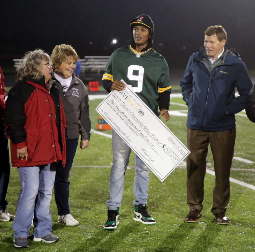 Mark Murphy, CEO/president of the Green Bay Packers, presented a $200,000 grant from the Packers and the NFL, for PhaseII of the Red Raider Field of Dreams project.